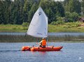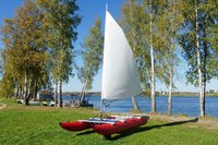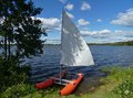 Парусный стакан и регулируемые шверц-плавники при желании дают возможность помимо штатного паруса устанавливать на катамаран и другие паруса (от швертбота Optimist, паруса от виндсерфов)